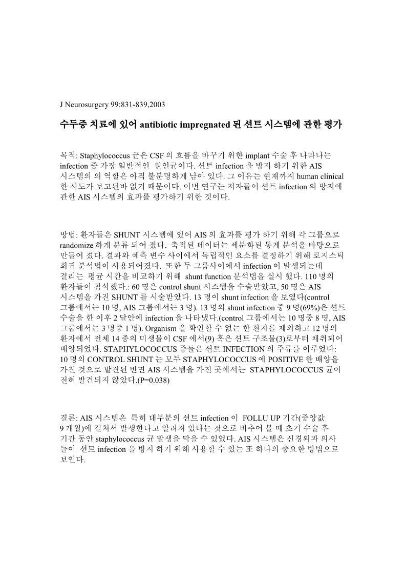 J Neurosurg 논문 번역본
